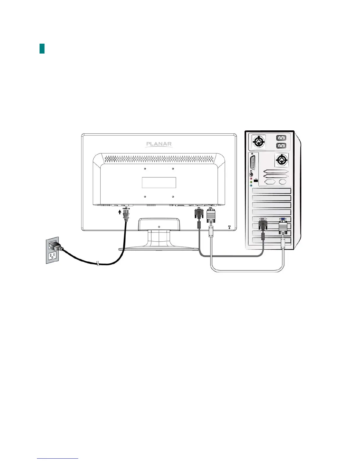 1. Connect either VGA or DVI Video Source from the monitor to the computer. Make sure both