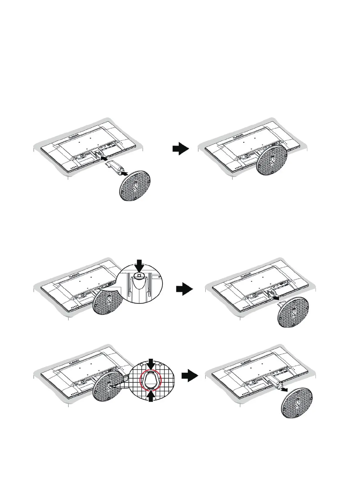3. Press the tenons inwardly and pull the base from stand to remove.