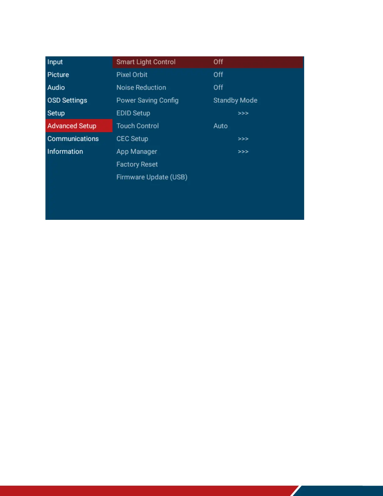 Note: RS232 and LAN functionality will not work in standby mode if Standby Mode is