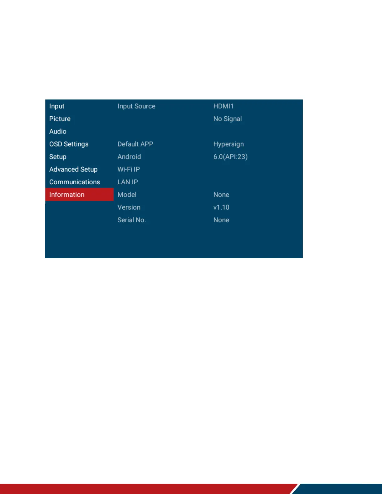 Planar PS5074K-N - Information Menu