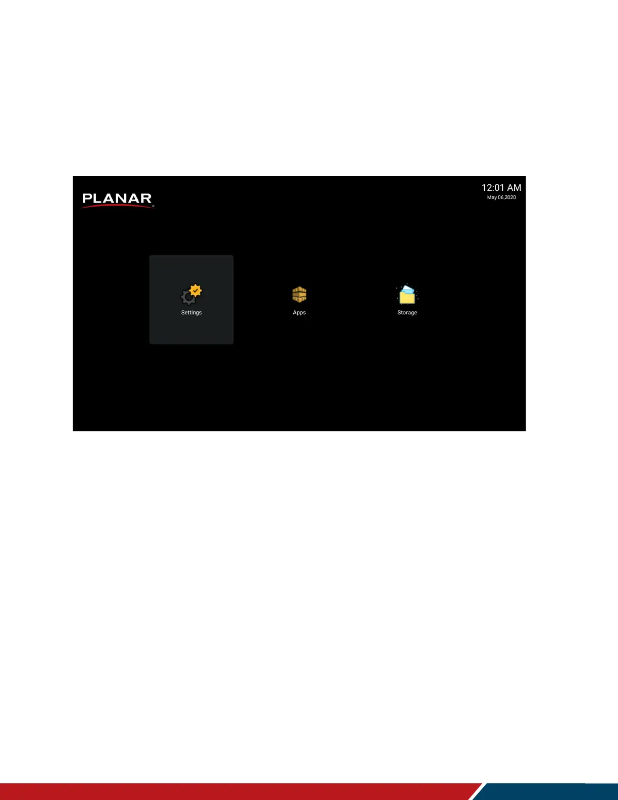 Planar PS5074K-N - OSD Android Settings Menu; Android Main Menu