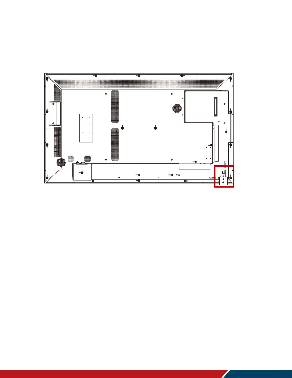 The remote control receiver is located on a module on the rear side of the display. Pull down