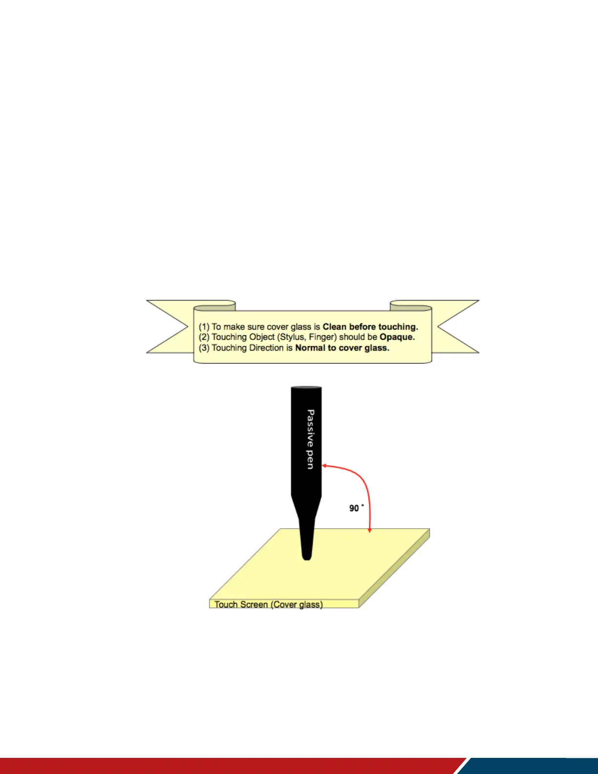 Note: When using the passive stylus on the touch screen, make sure to follow the instructions shown