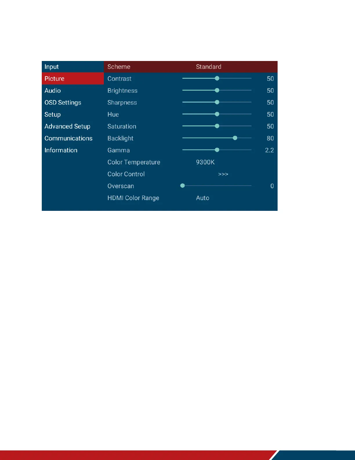 Increase or decrease the brightness of picture. Press or to select the desired level.