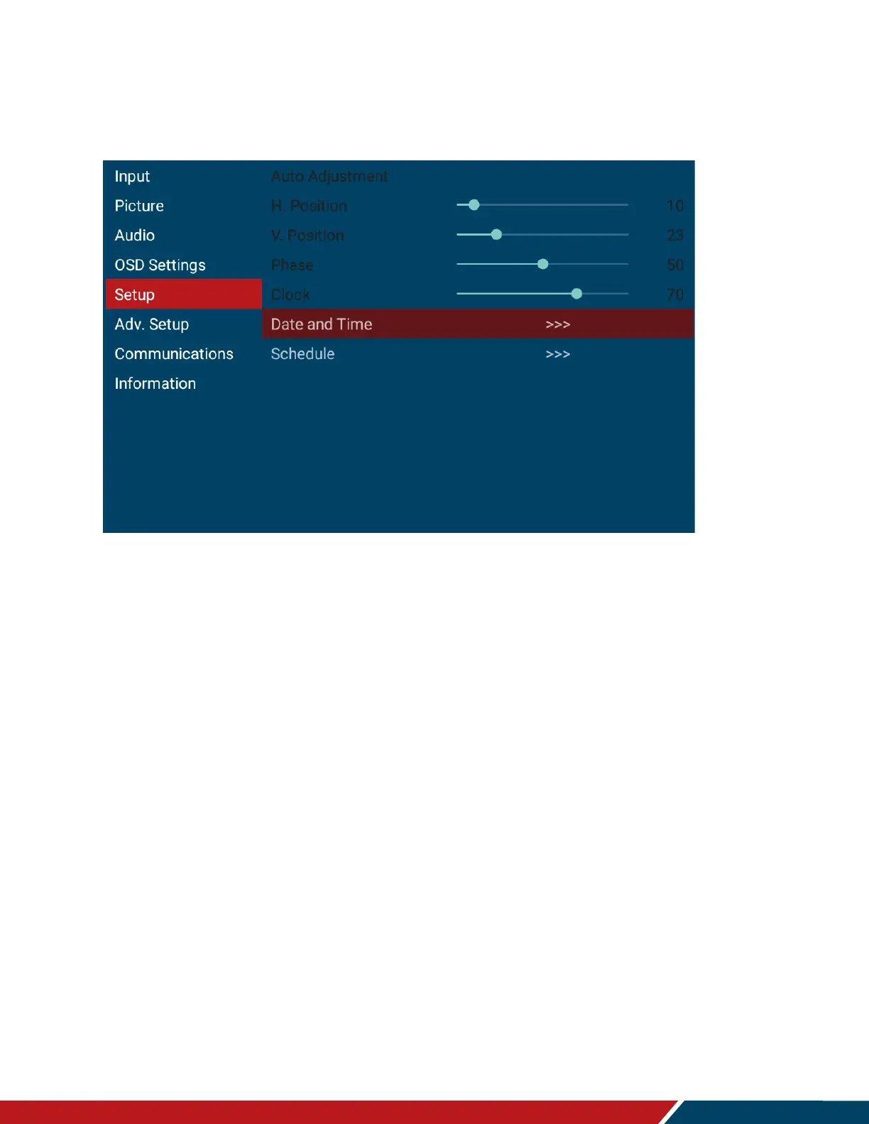Adjust the clock of the displayed signal (VGA source only). Press or to select the