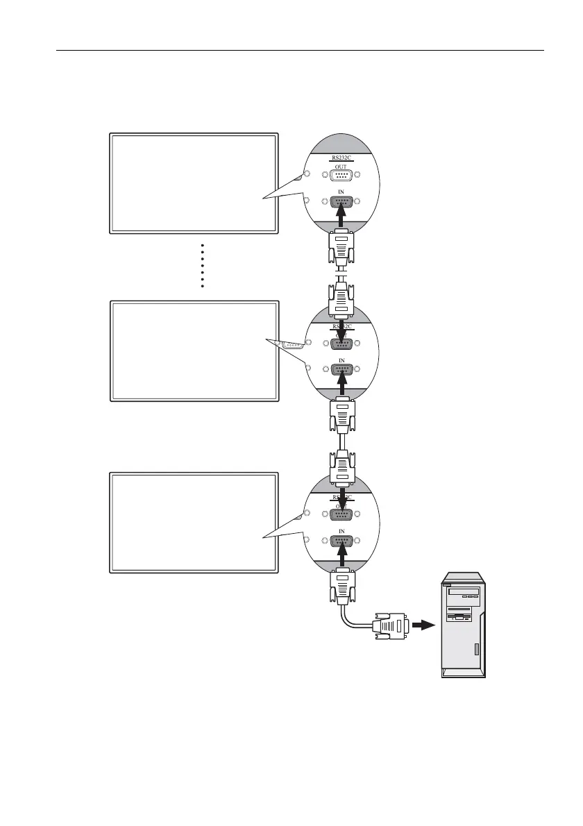 With the RS232C-IN/OUT interfaces, you can connect multiple displays serially (daisy chain)