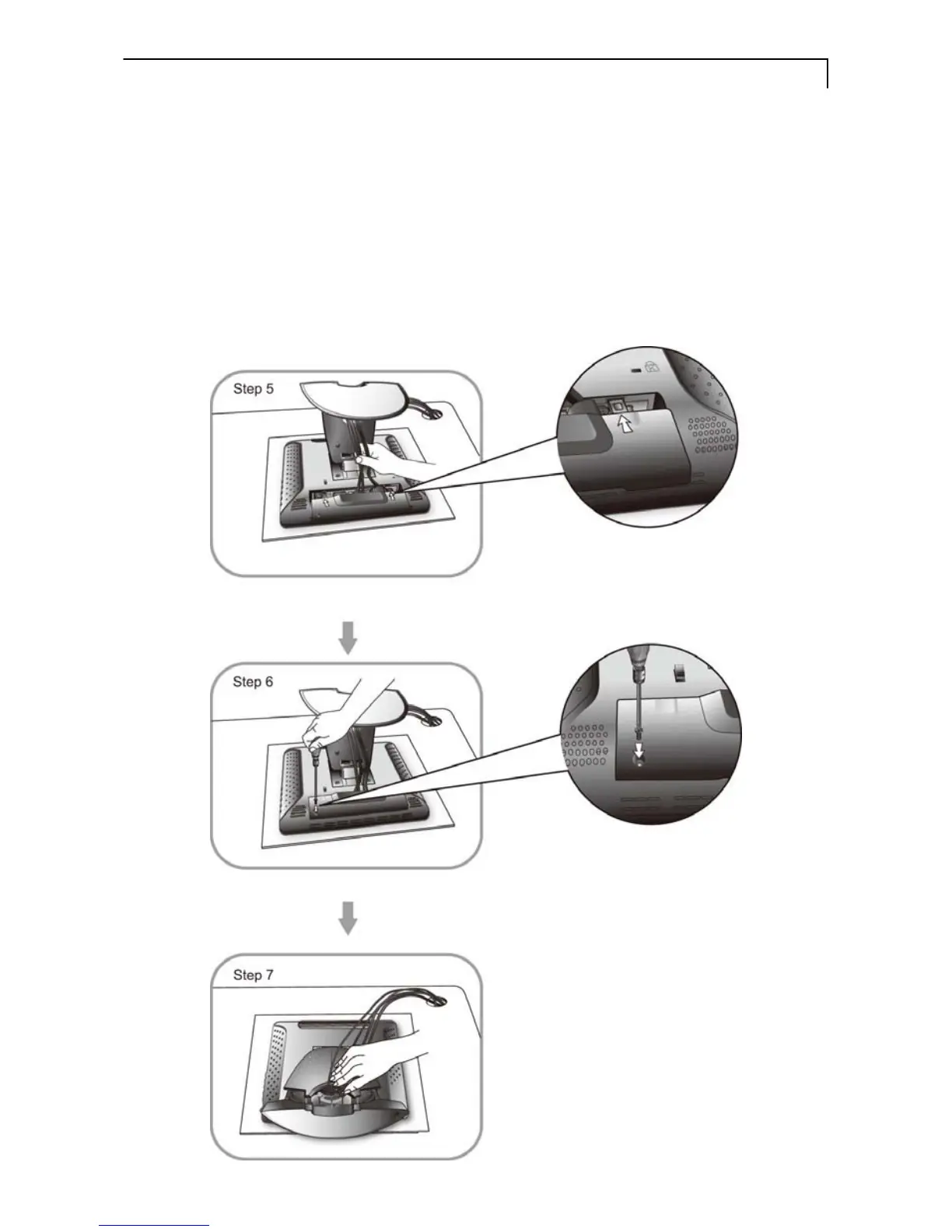 7. Re-attach the stand back cover to the LCD stand by pressing firmly until the