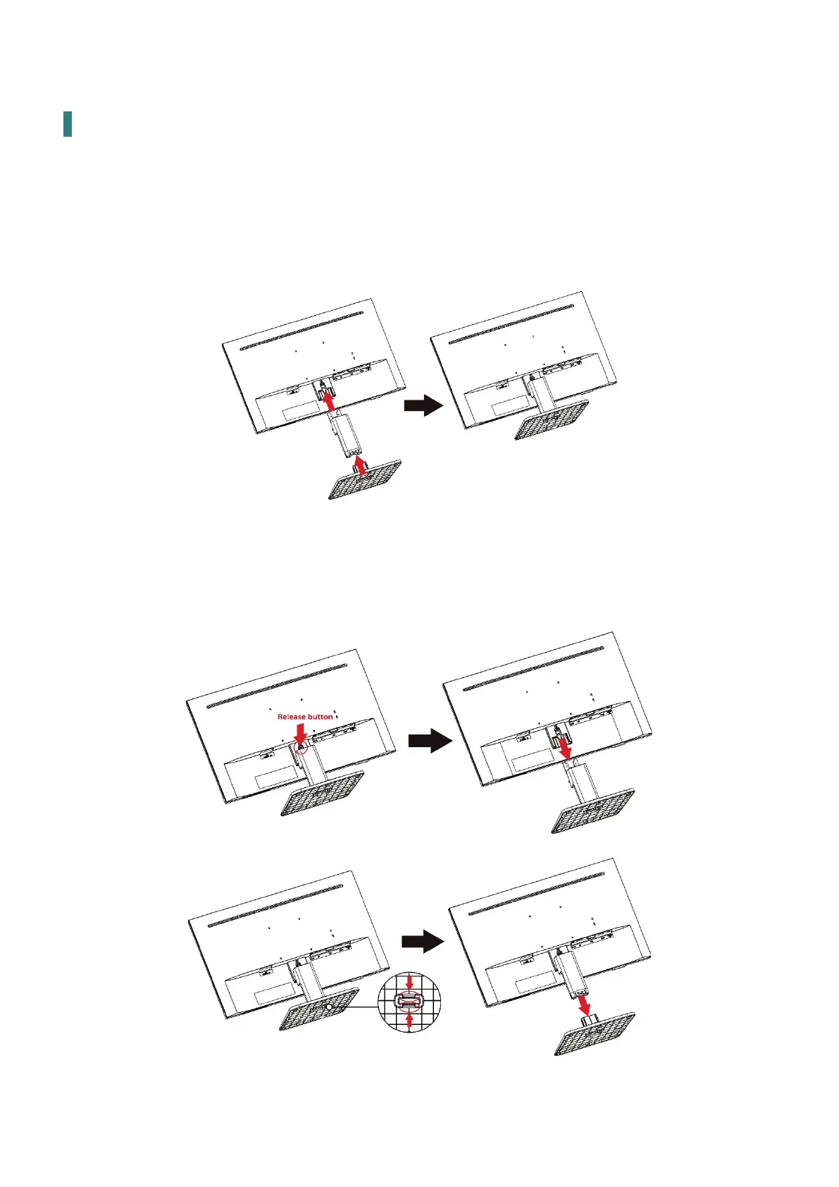 2. Push release button and pull stand away from monitor.