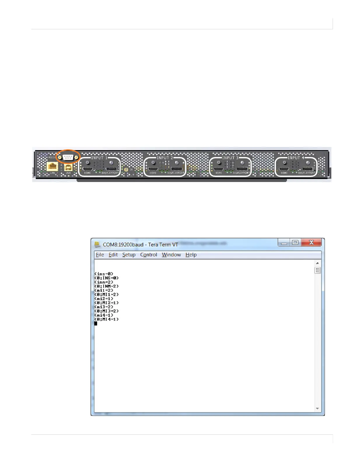 RS232 commands, you can pull up a basic program such as Tera Term to send