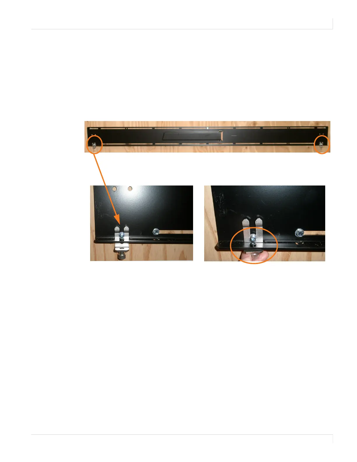 the mount. Push the hardware up and finger tighten the captive screws on