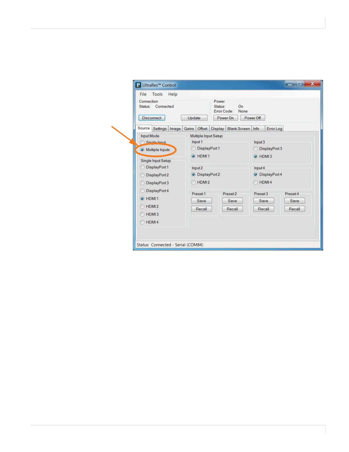 Selecting multiple sources with UltraRes Control Software
