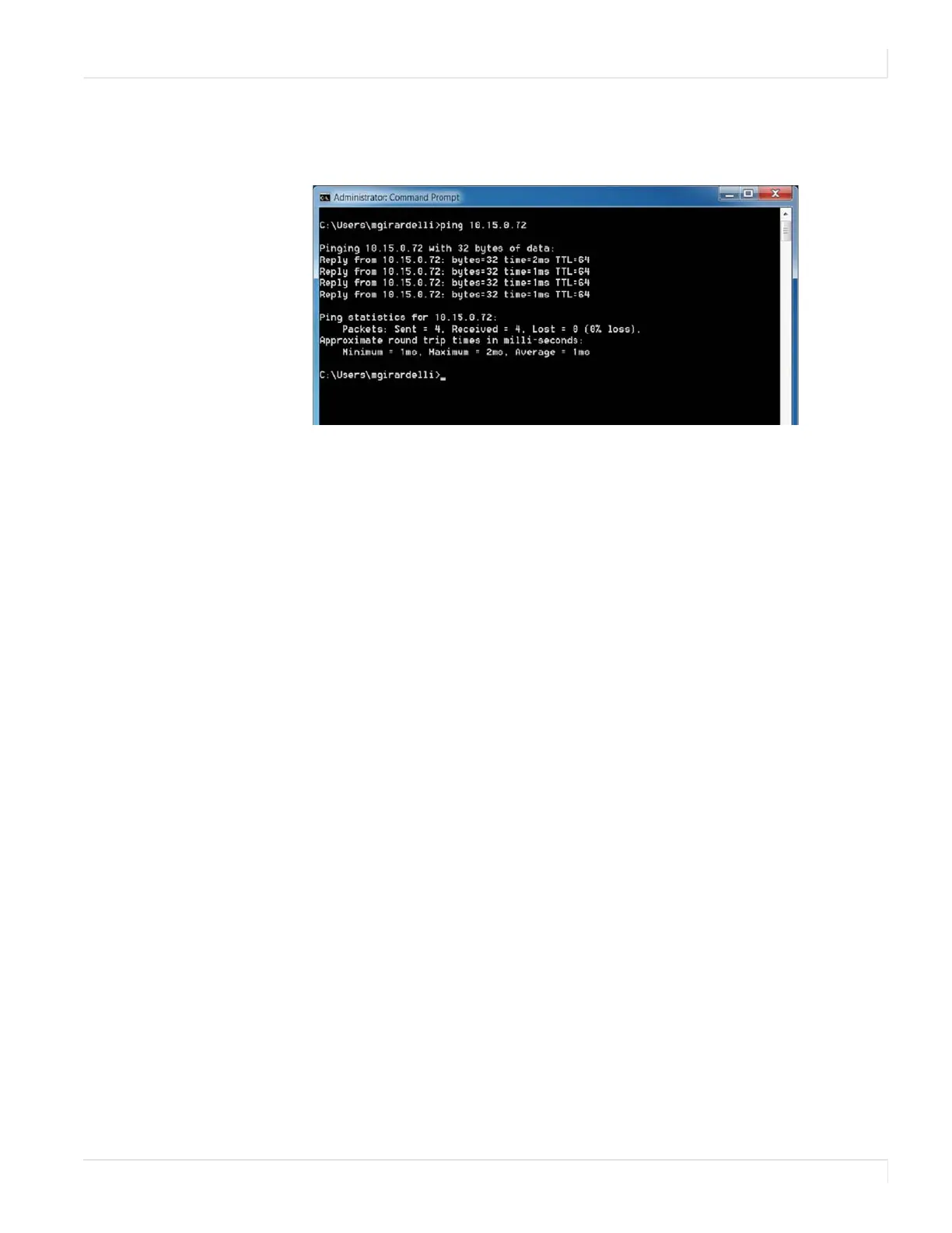 connection, open a Windows command prompt and use the “ping” command
