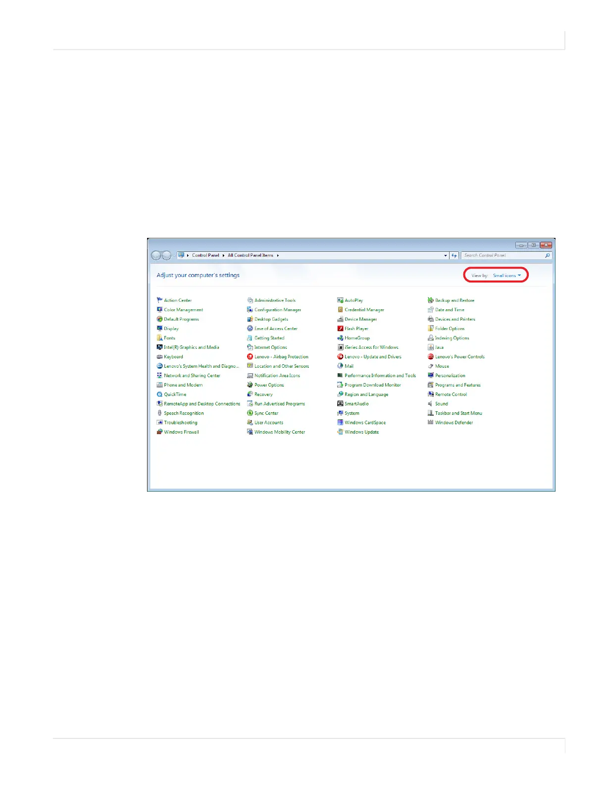 3 On the PC, select Start, Control Panel and choose the View by dropdown in