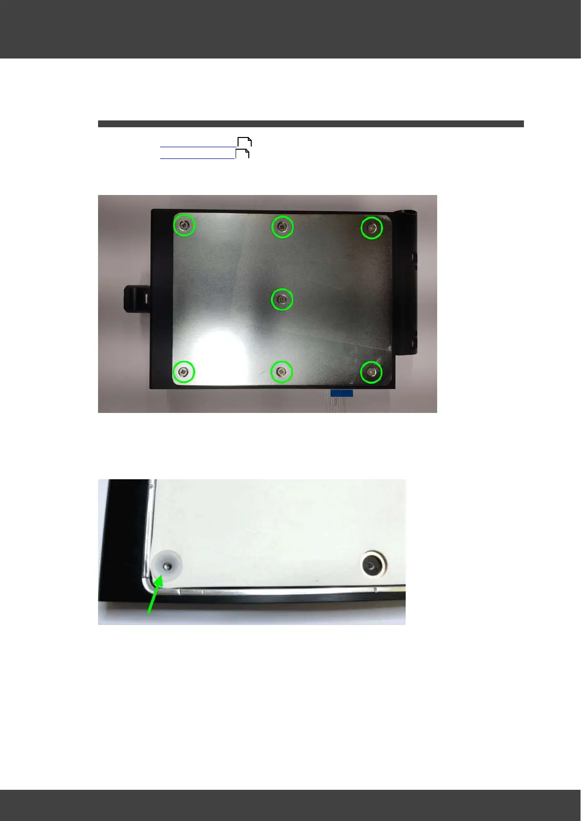 the FCC cable and the support bar beneath the FCC cable. Remove the clamping