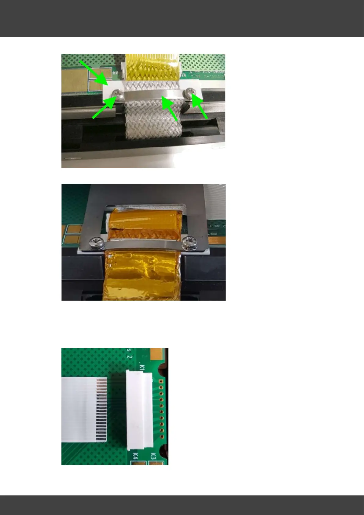 Fig.1a Clamping bar holding FCC cable to upper heater board.