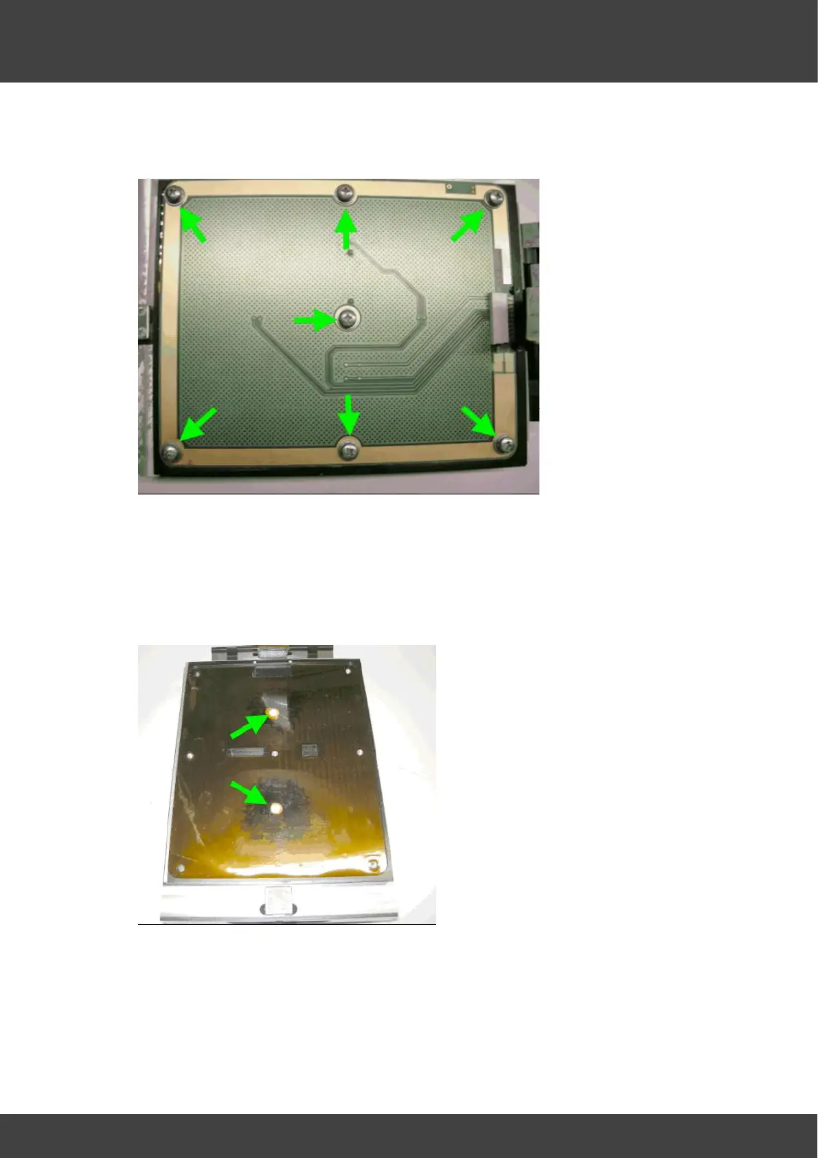 Fig.3 showing 7 screws securing lower heater circuit board.