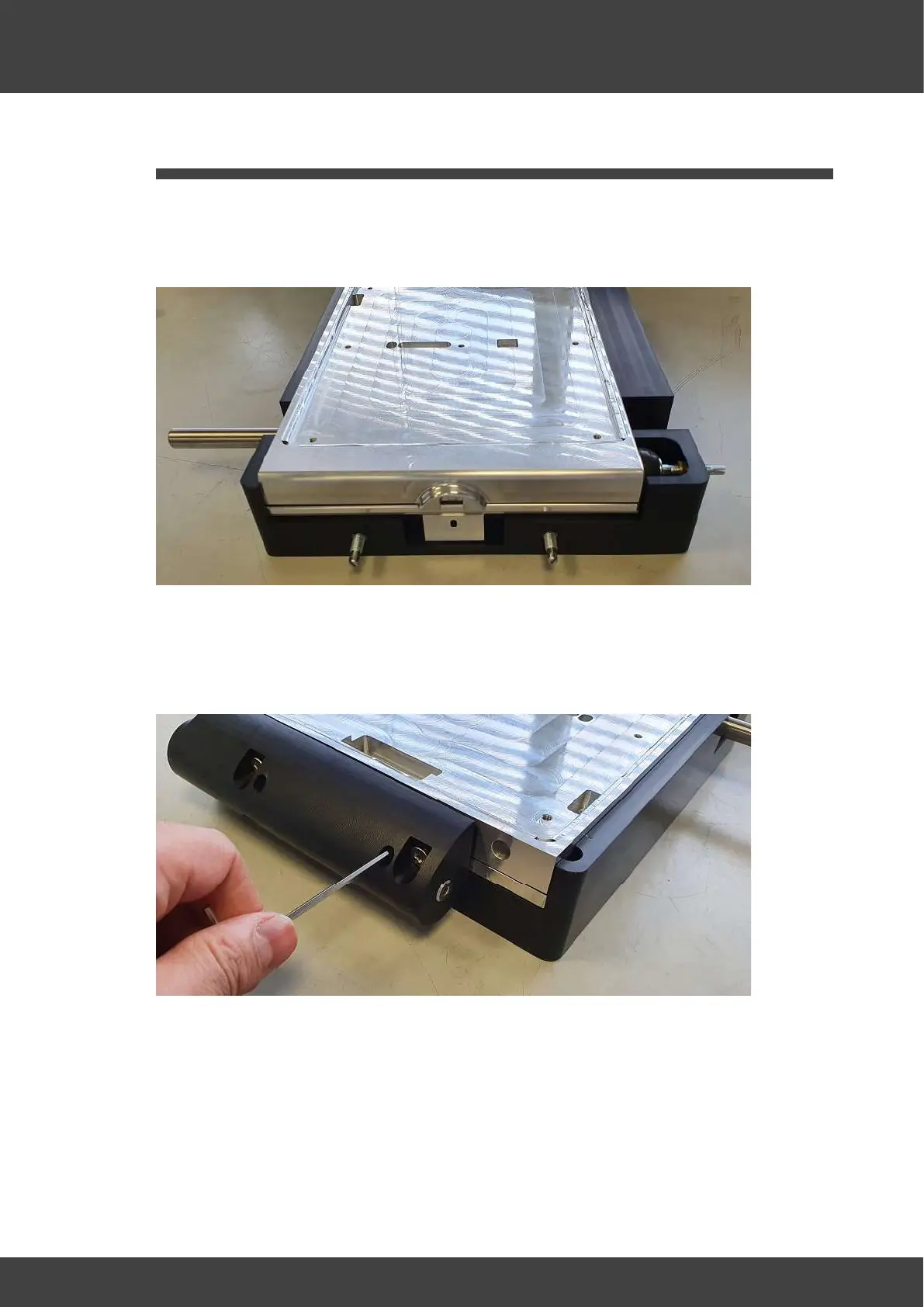 4. Insert adjustment jig spacer in-between lid and base to maintain 1.6mm gap all round.