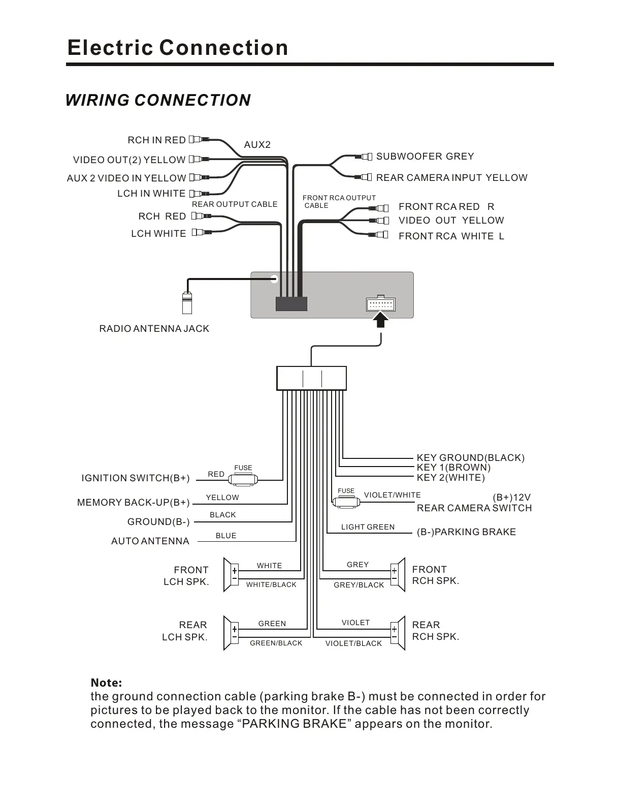 connected, the message “PARKING BRAKE” appears on the monitor.
