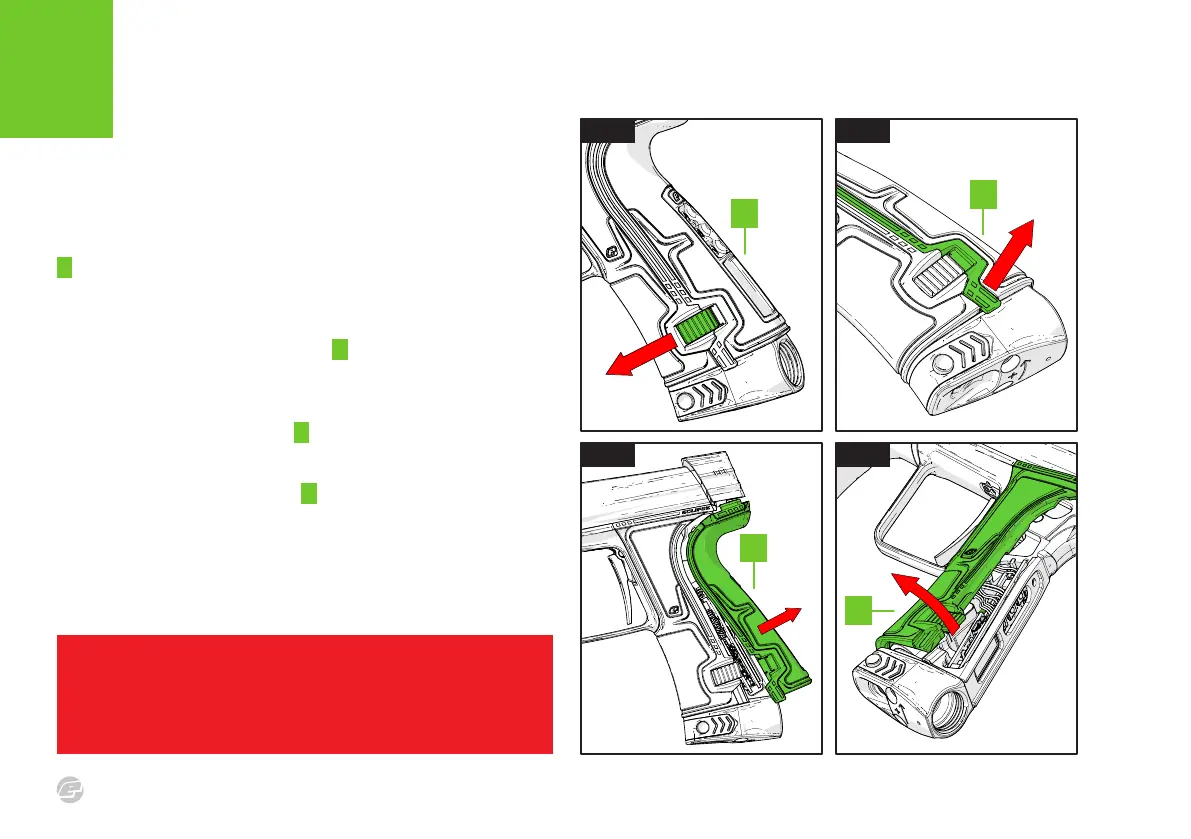 that no paintballs are in the marker or loader before removing/replacing the grips.