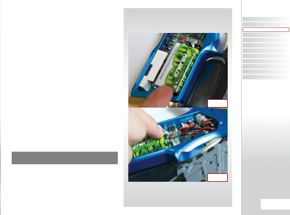 into the recess with the battery terminals away from you.