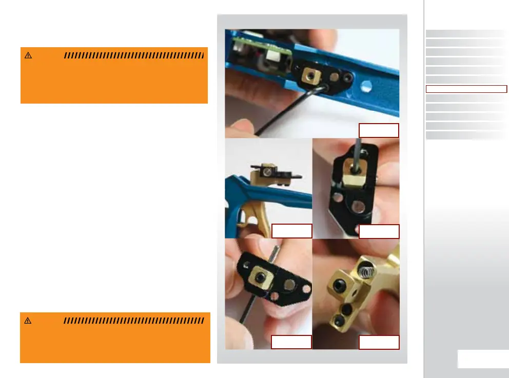Using a 1/16” hex key, loosen the trigger pin retaining set