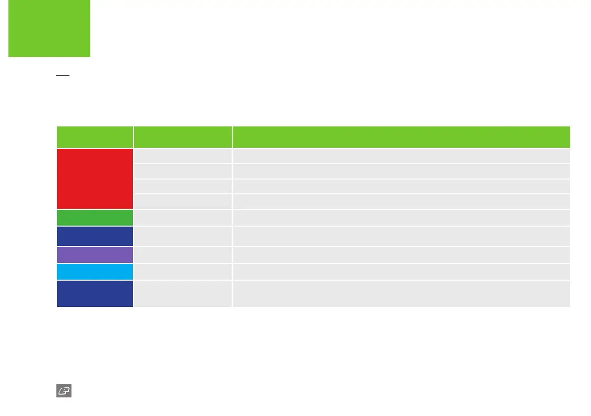 This overview page explains each colour and their roles once you enter the LED set-up mode (see page 22).