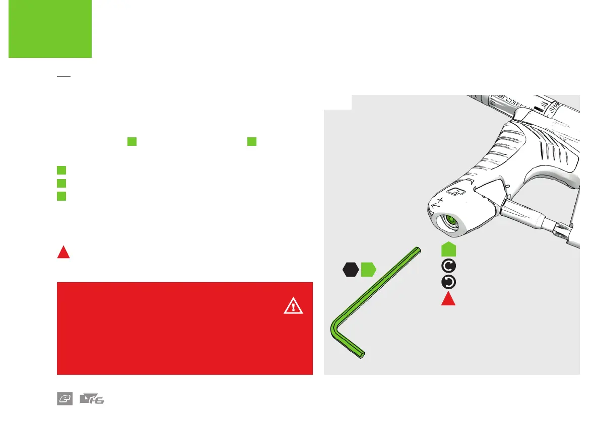 Turn the hex key counter-clockwise to increase velocity.
