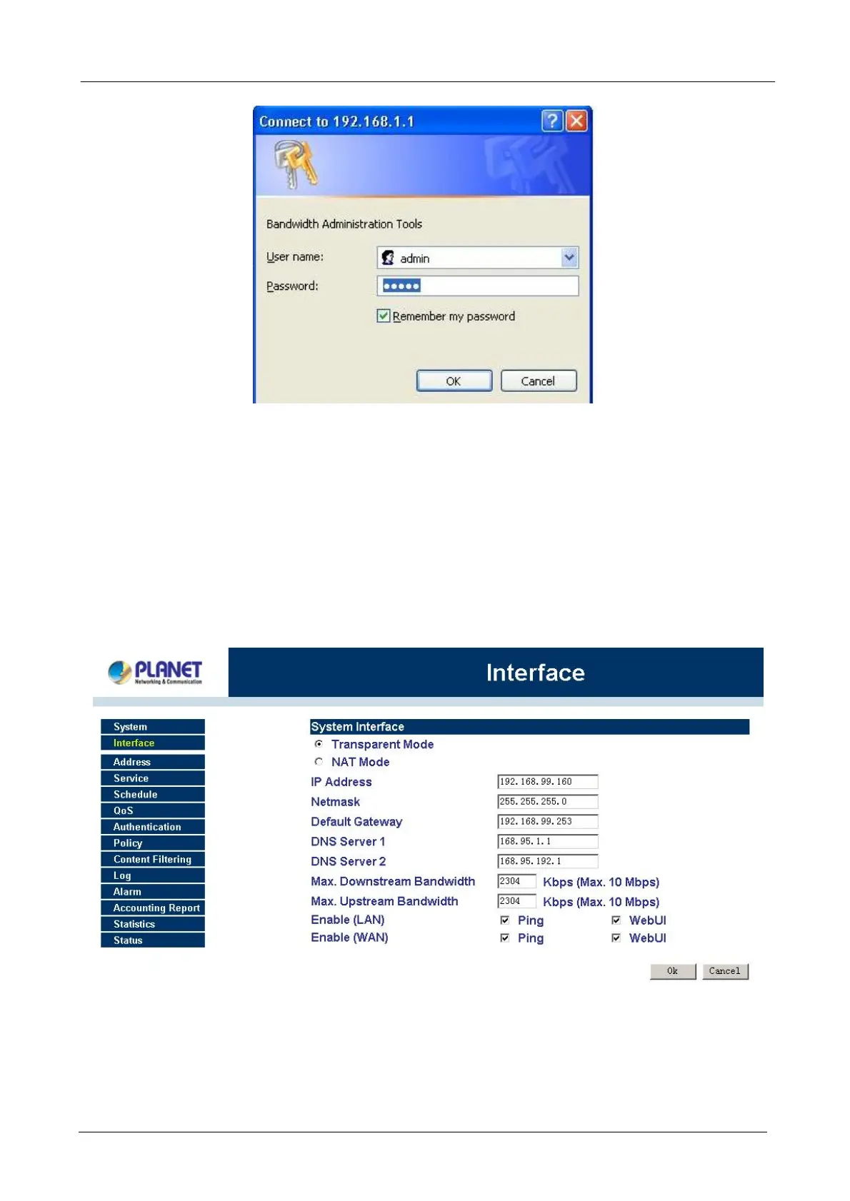 After entering the username and password, the Bandwidth Management Gateway WEB UI screen will display.