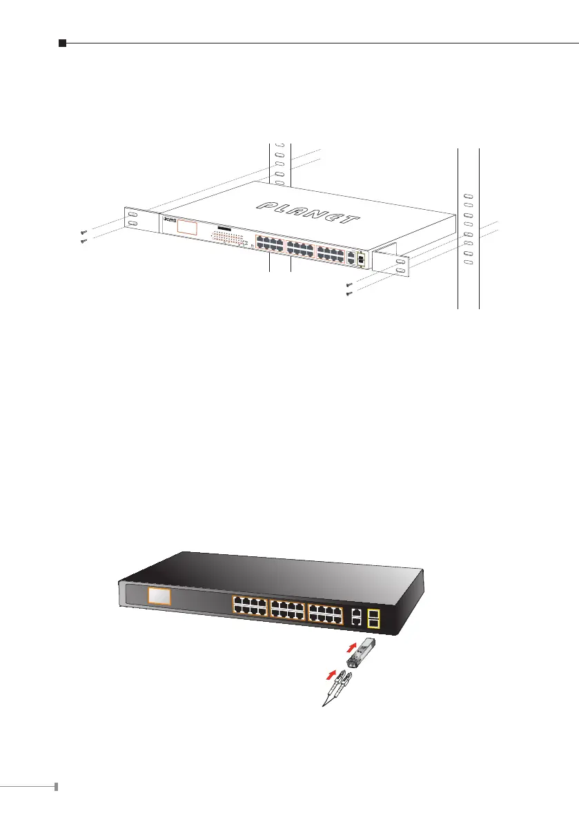 Step 5: After the brackets are attached to the 802.3at PoE+ Switch, use suitable