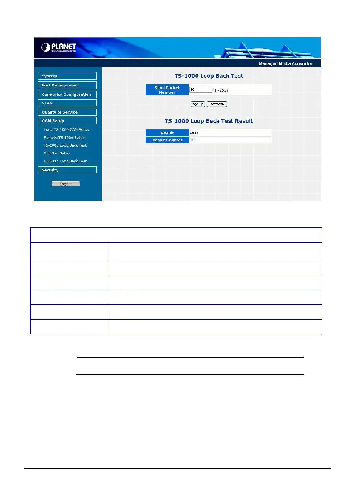 Table 4-14 Descriptions of the TS-1000 Loop Back Test Web Page Screen Objects
