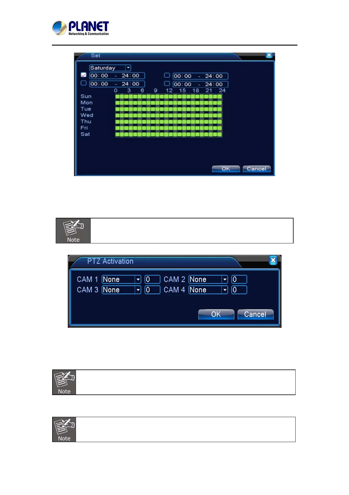PTZ Activation: Set the PTZ activation when the alarm is turned on.
