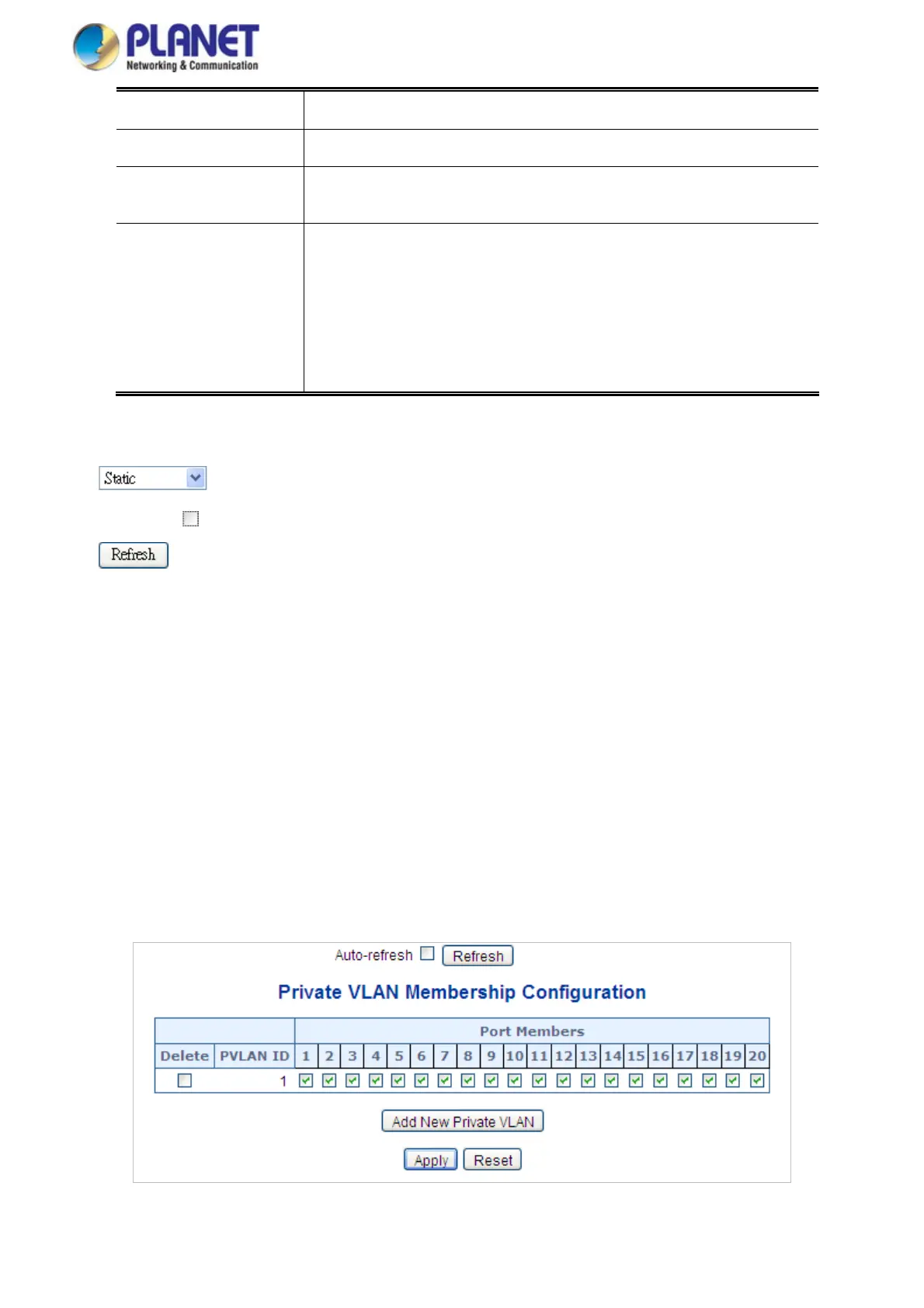 or deleted here. Port members of each Private VLAN can be added or removed here.