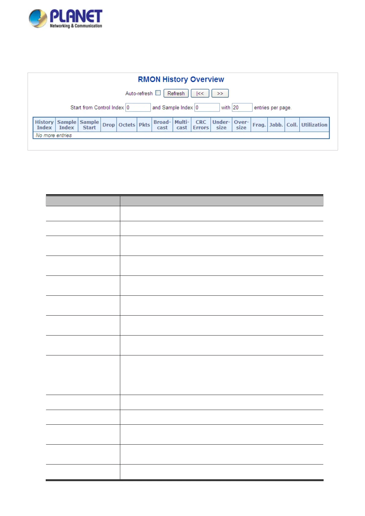 This Page provides a detail of RMON history entries; screen in Figure 4-17-6 appears.