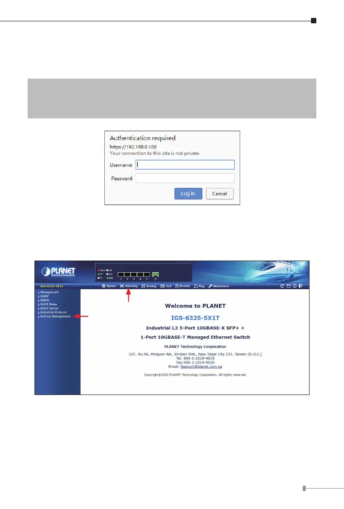 “admin” and password “admin” (or the password you have changed