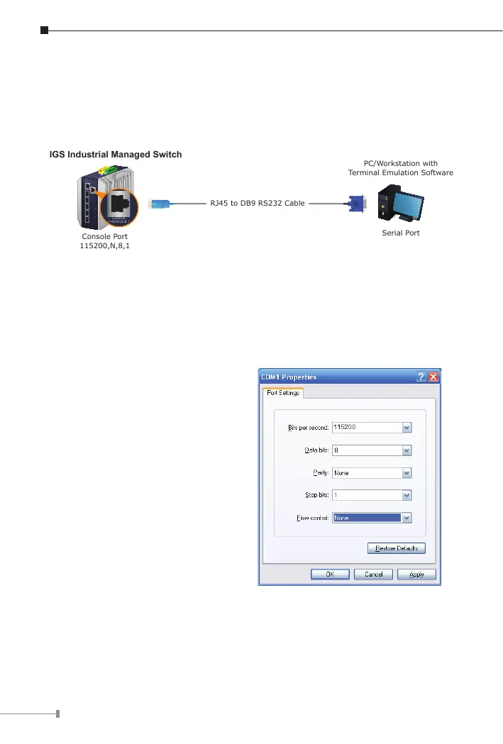 notebook computer and to RJ45 type serial (console) port of the Industrial