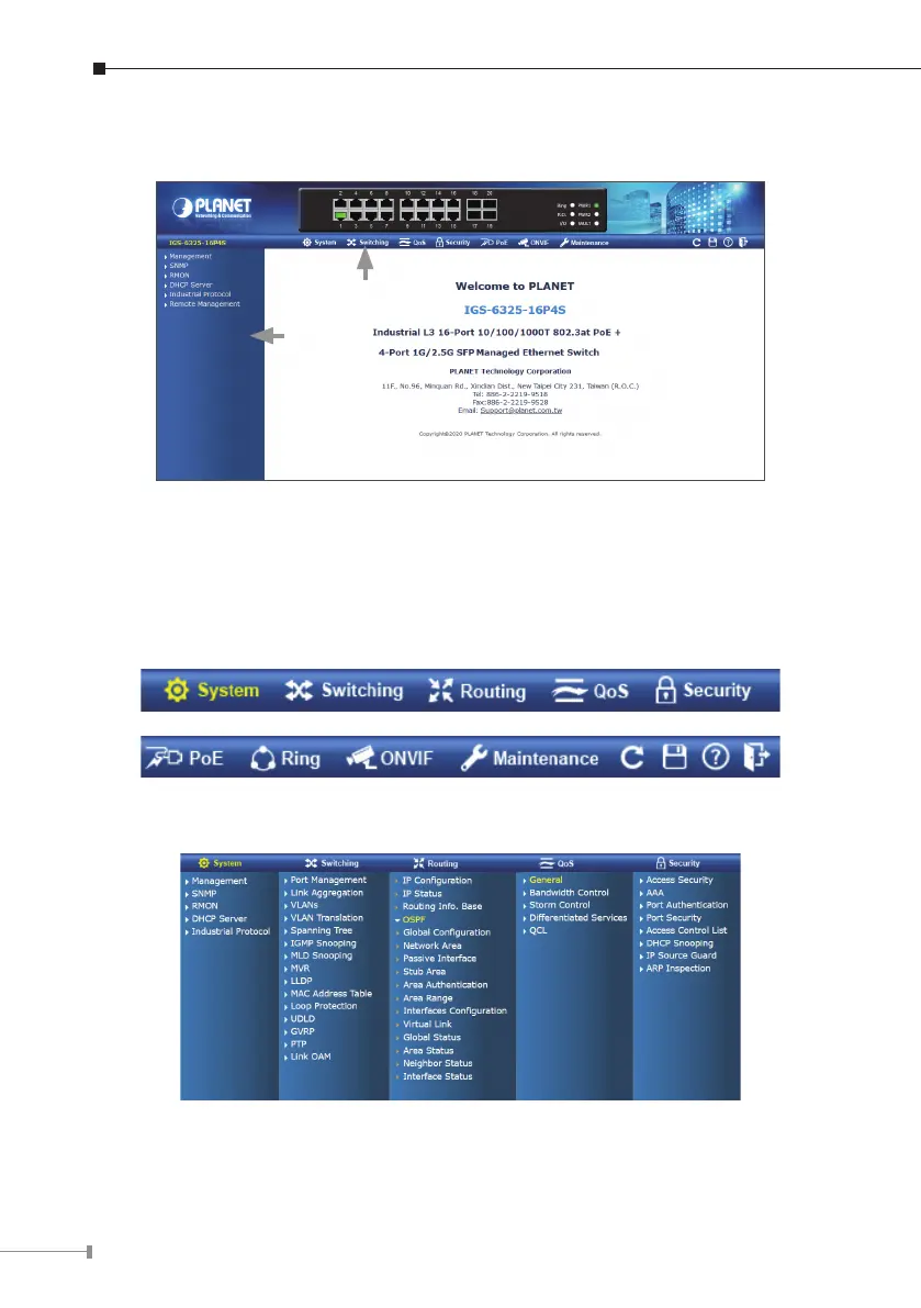 and statistics the Industrial Managed Switch provides. The Switch Menu always