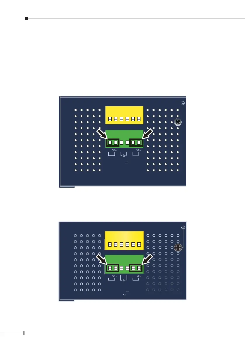 1.Insert positive/negative DC power wires into Contacts 1 and 2 for Power 1, or
