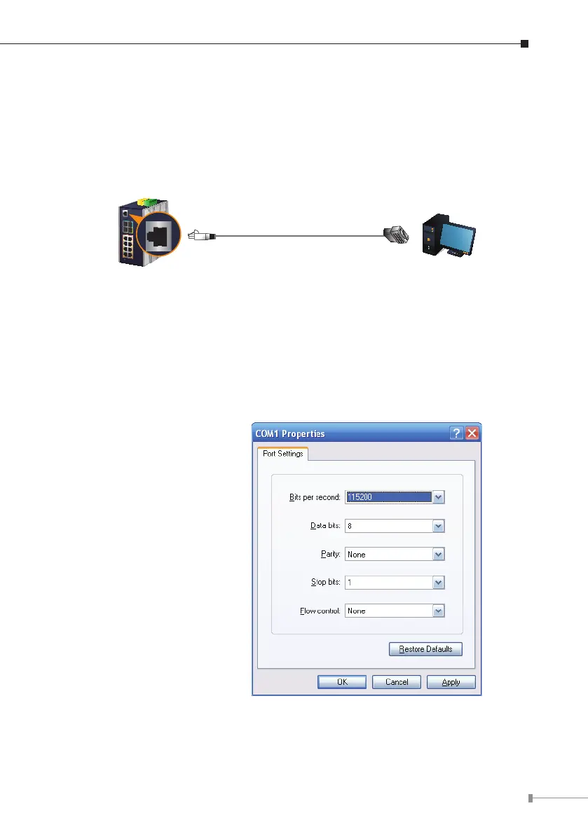notebook computer and to RJ45 type serial (console) port of the Industrial