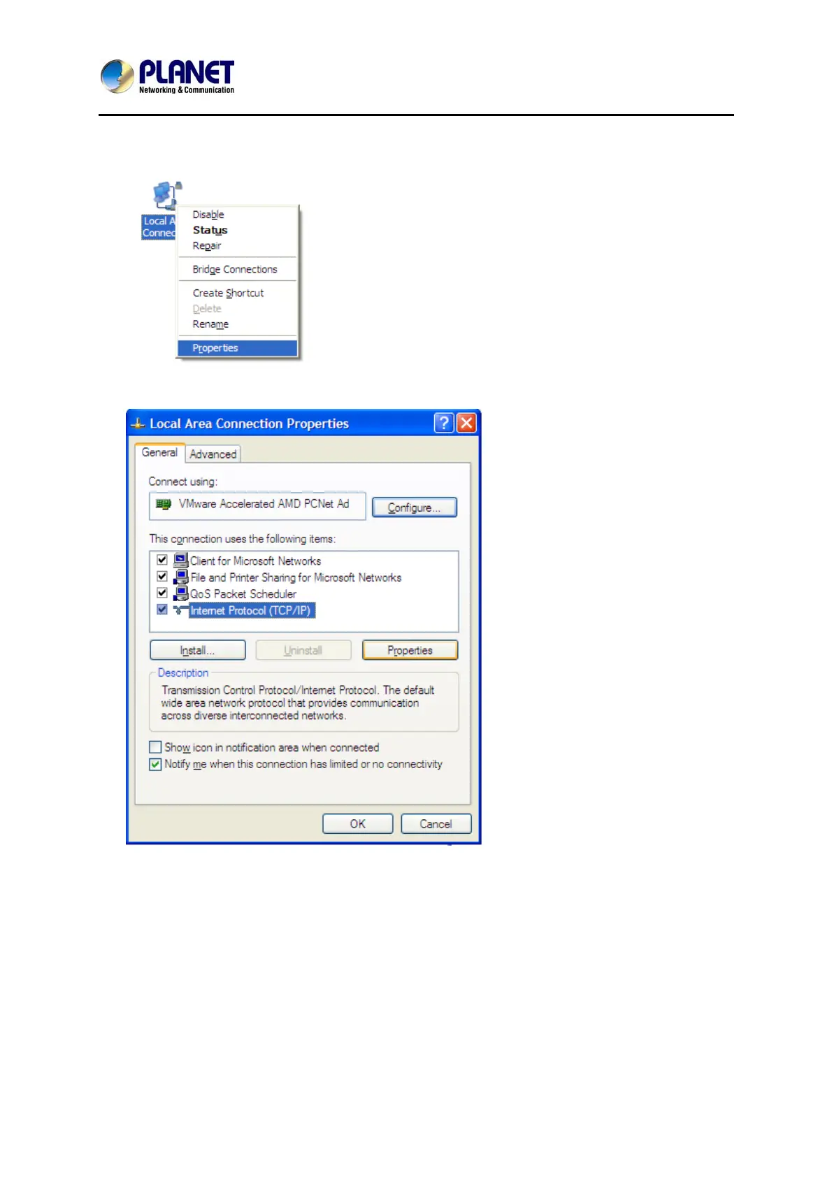 3. Select Internet Protocol (TCP/IP) and click Properties.