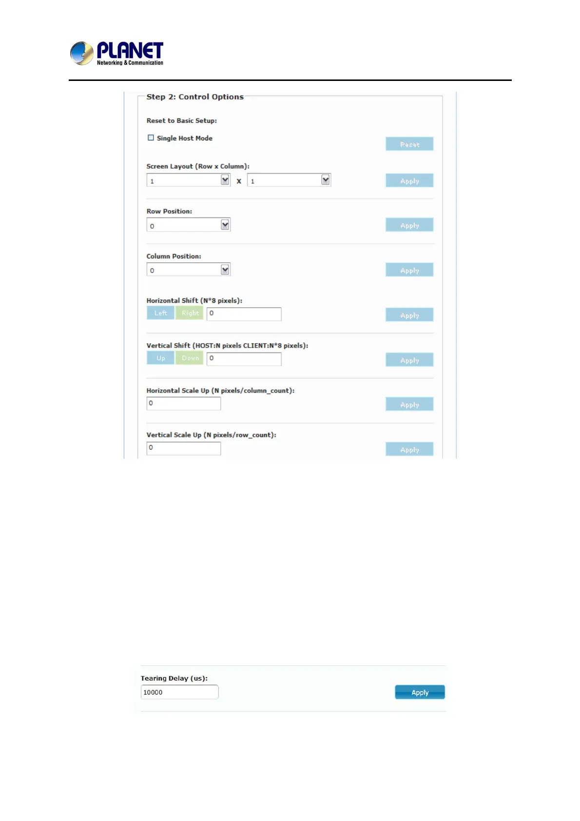 μs. Before setting up Tearing Delay, users need to choose control target (each or
