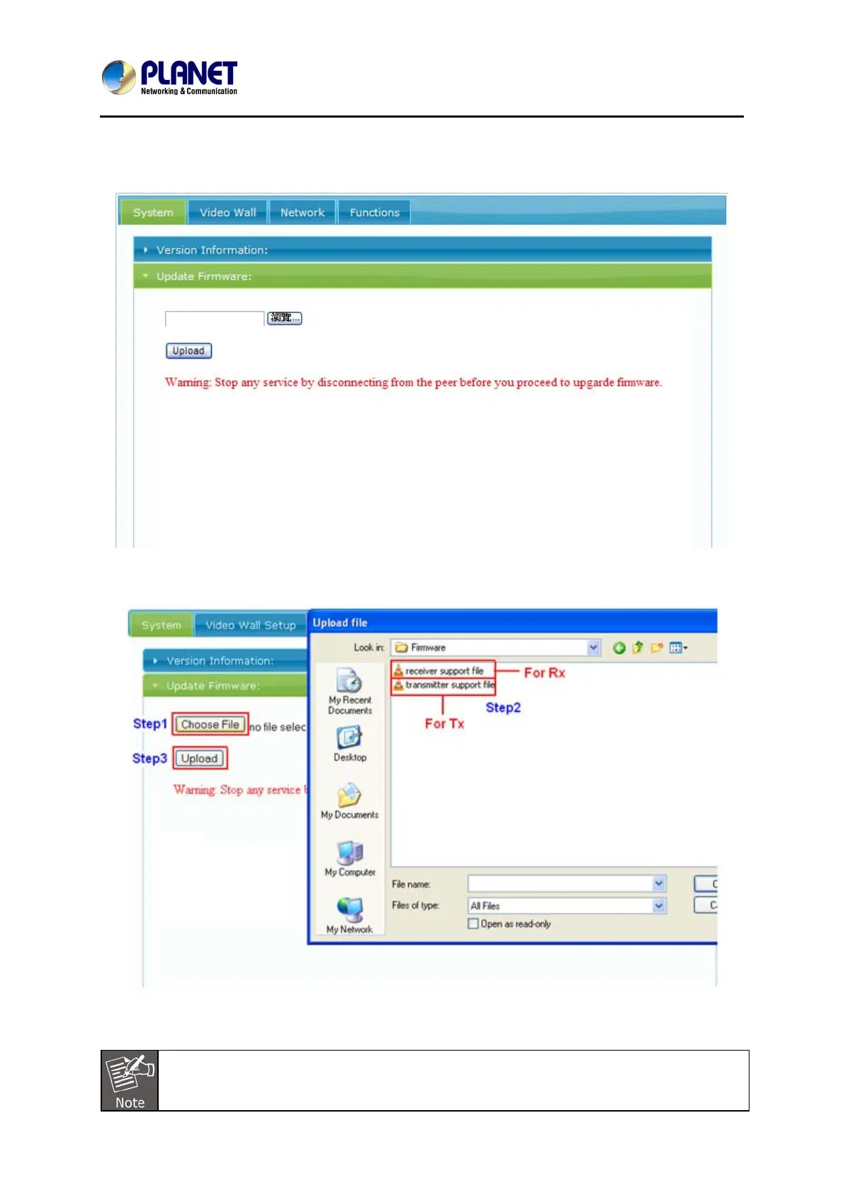 unit, and the receiver firmware must be uploaded to the receiver unit. Uploading the