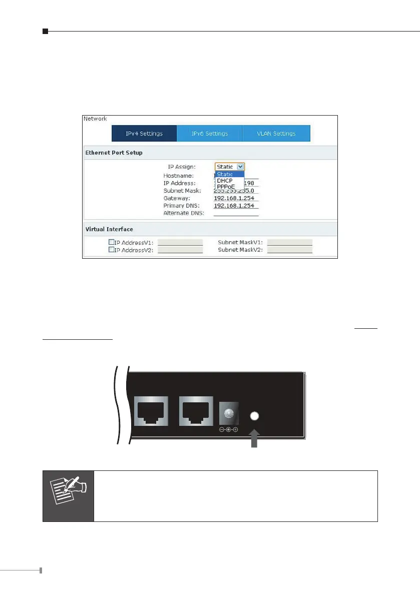 To reset the IP address to the default IP Address “192.168.0.1” (ETH) or reset the