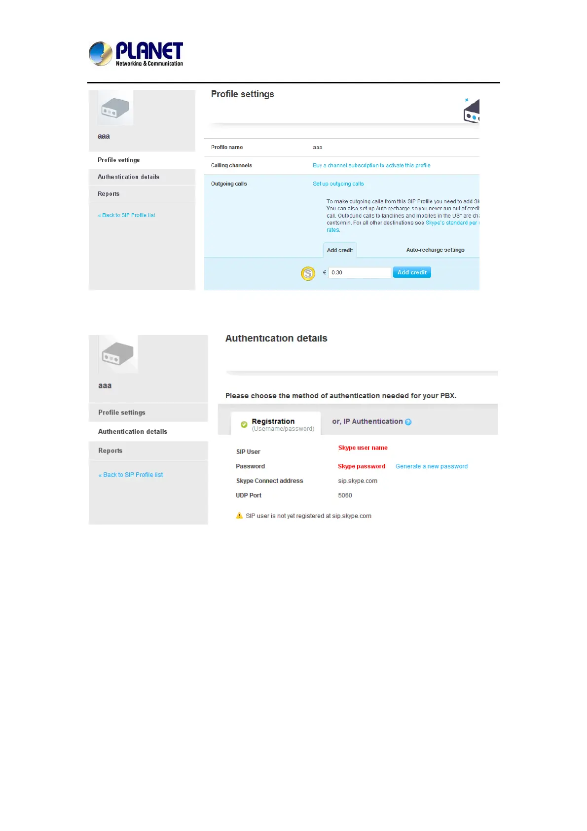 Then you can see the sip account information, and please click the Authentications details.