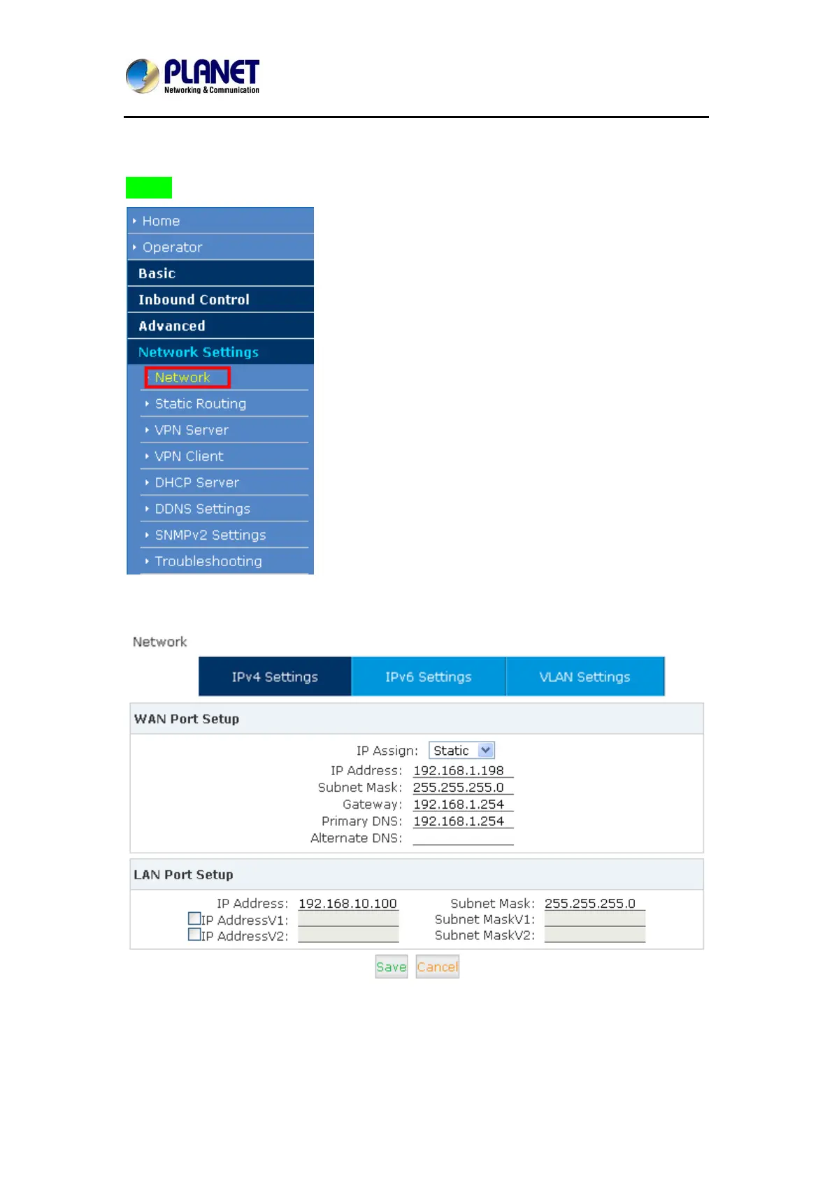 Planet IPX-2500 - 2.2 Configuring the Network Setting