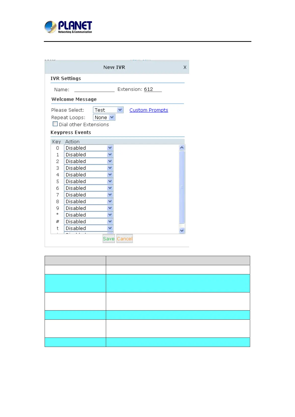 Extension If you want to listen to the IVR by dialing extension, please