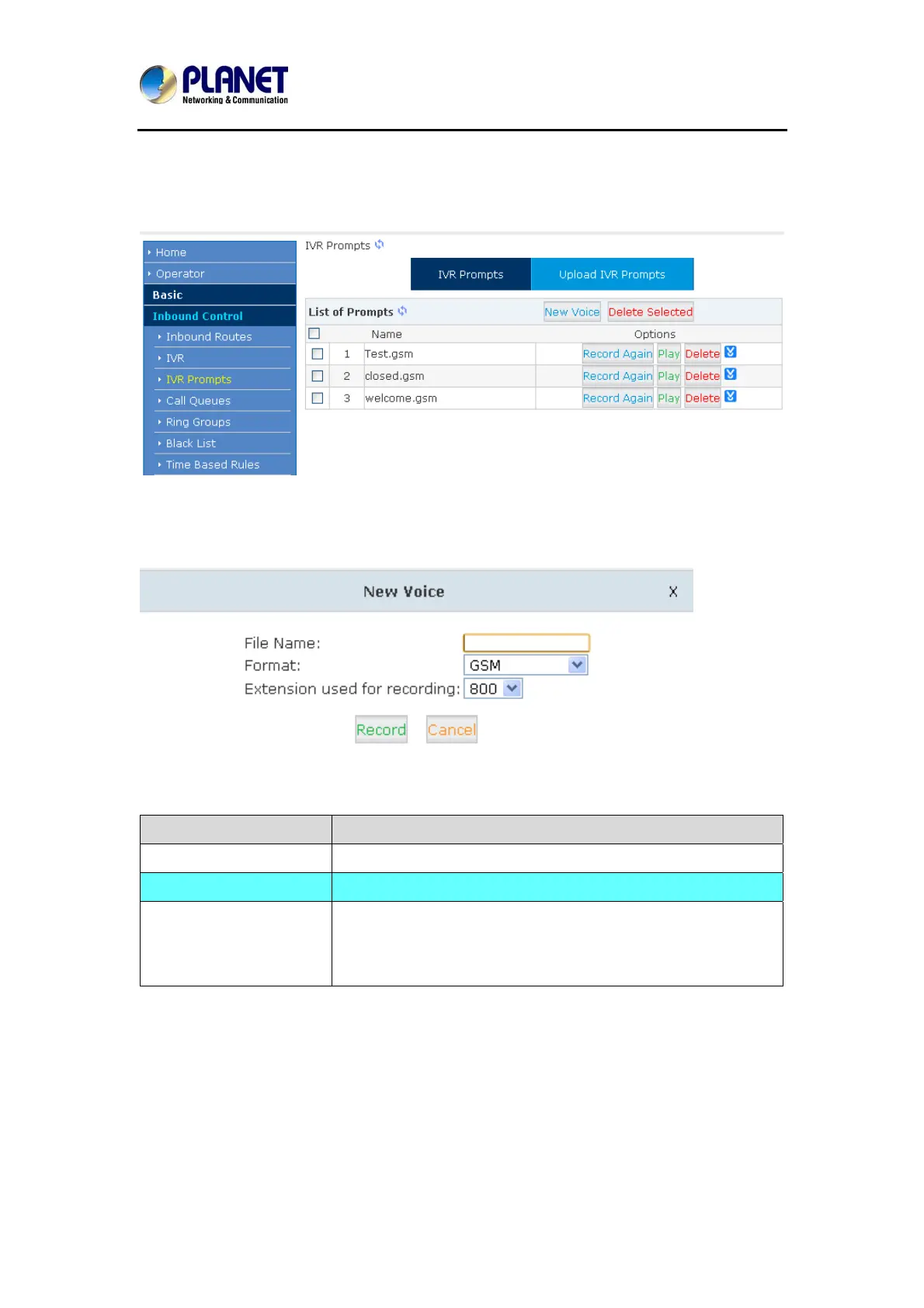 Click【IVR Prompts】----【New Voice】to create new IVR prompt:
