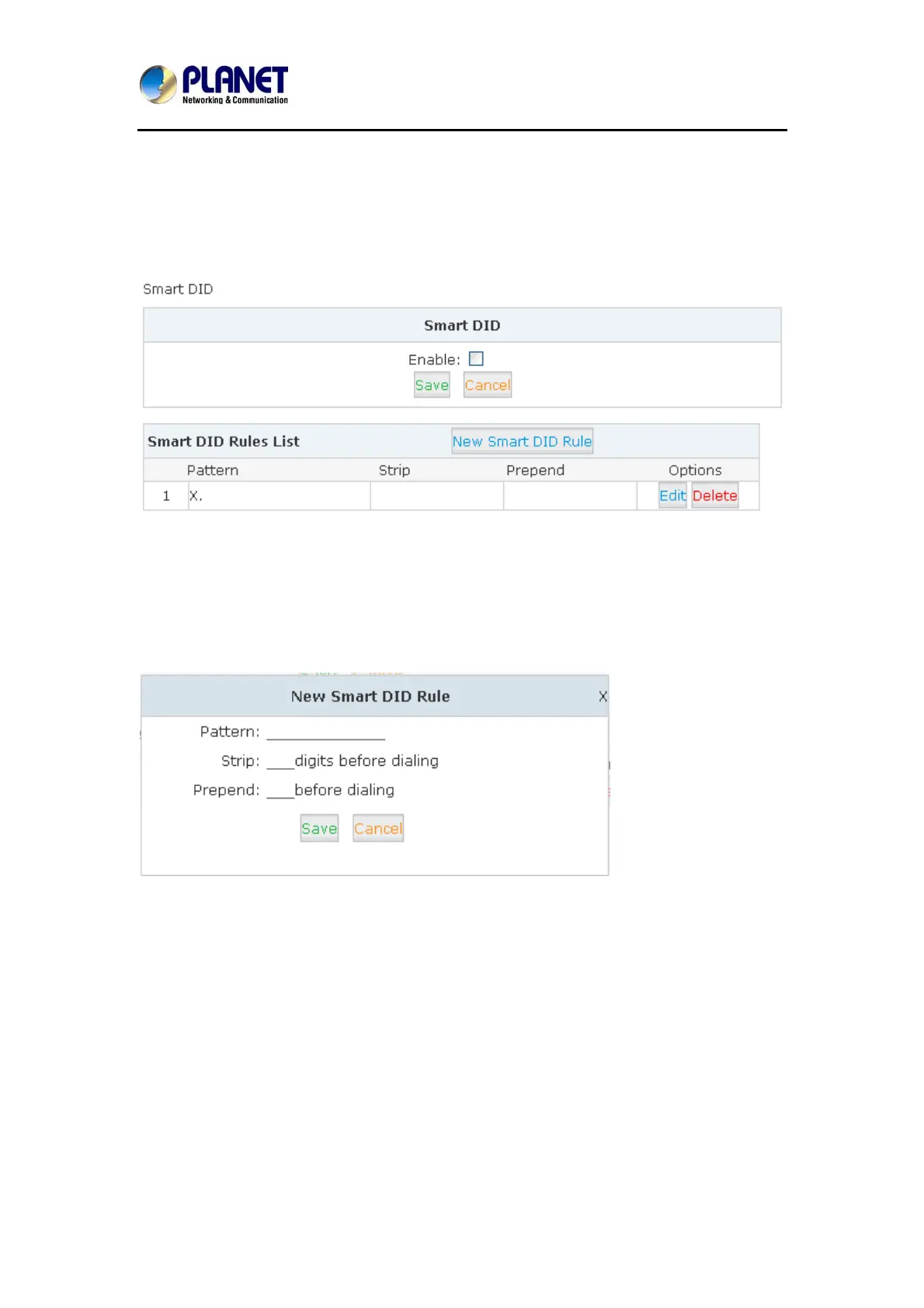 When user makes calls by the callback number to Planet IP PBX, the call will be hung up
