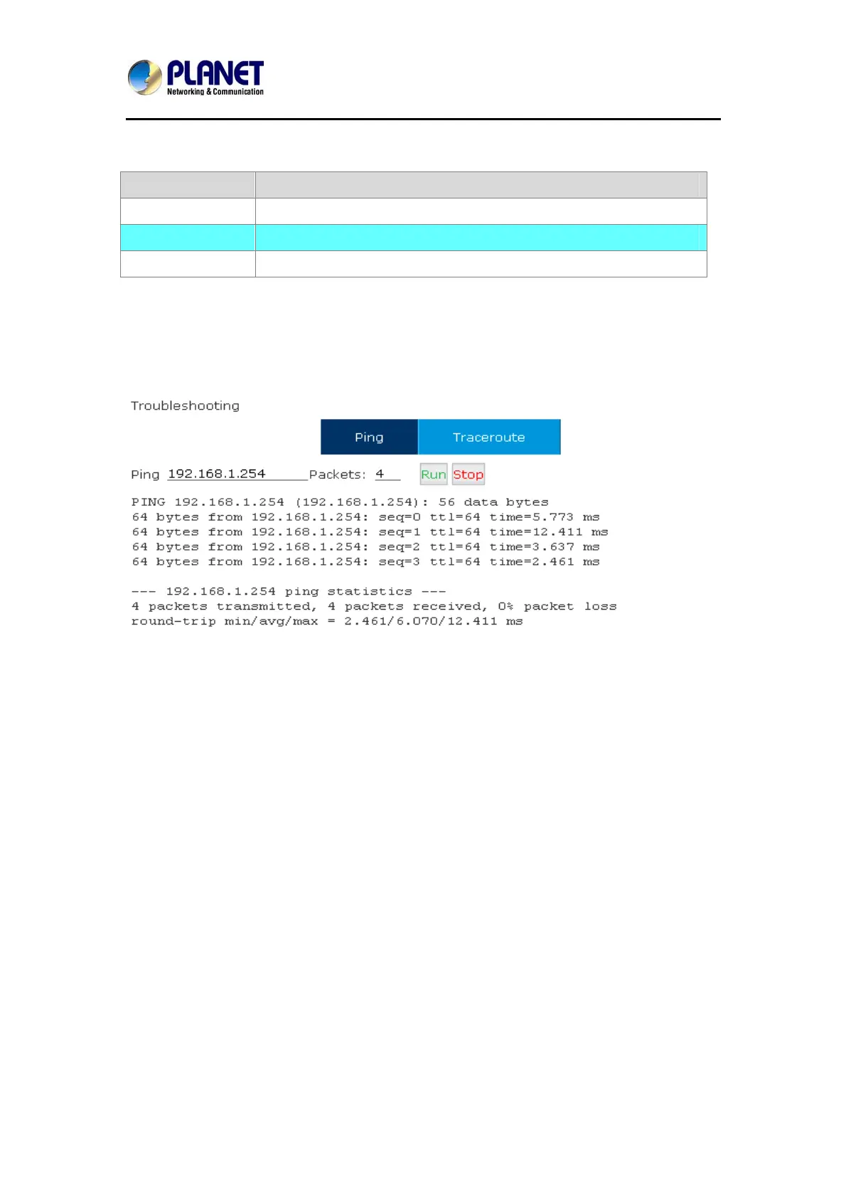 You can ping other network devices through Planet IP PBX and track network routing by