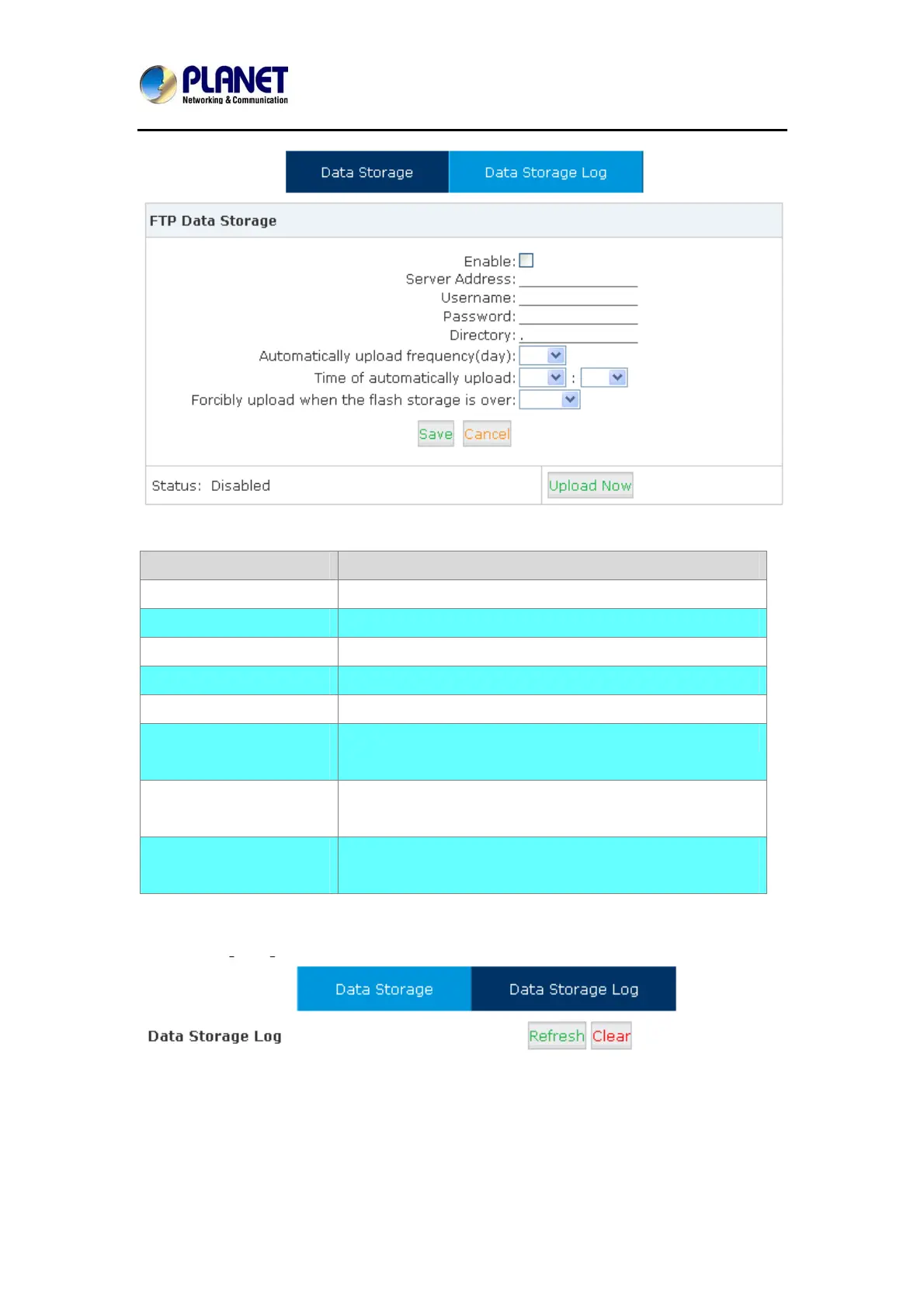 Enable Enable FTP Data Storage.