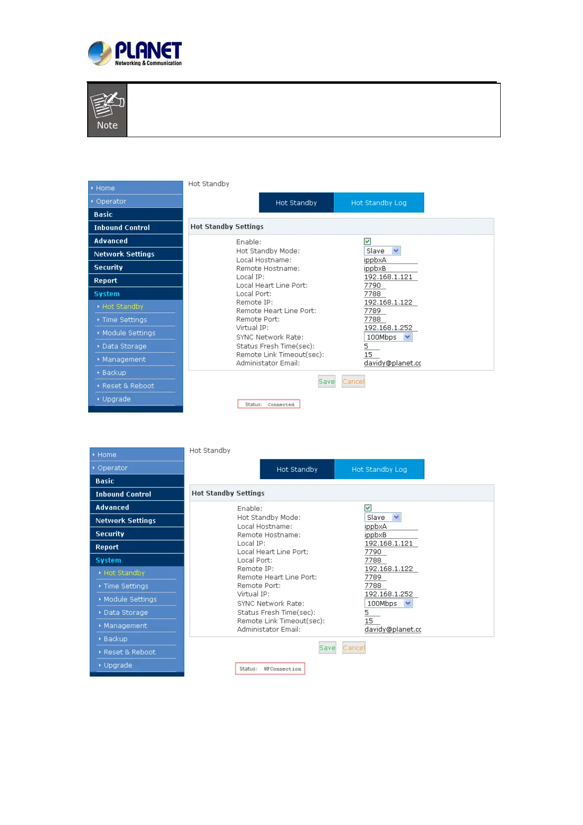 StatusWFConnection indicates waiting for connection from the other unit